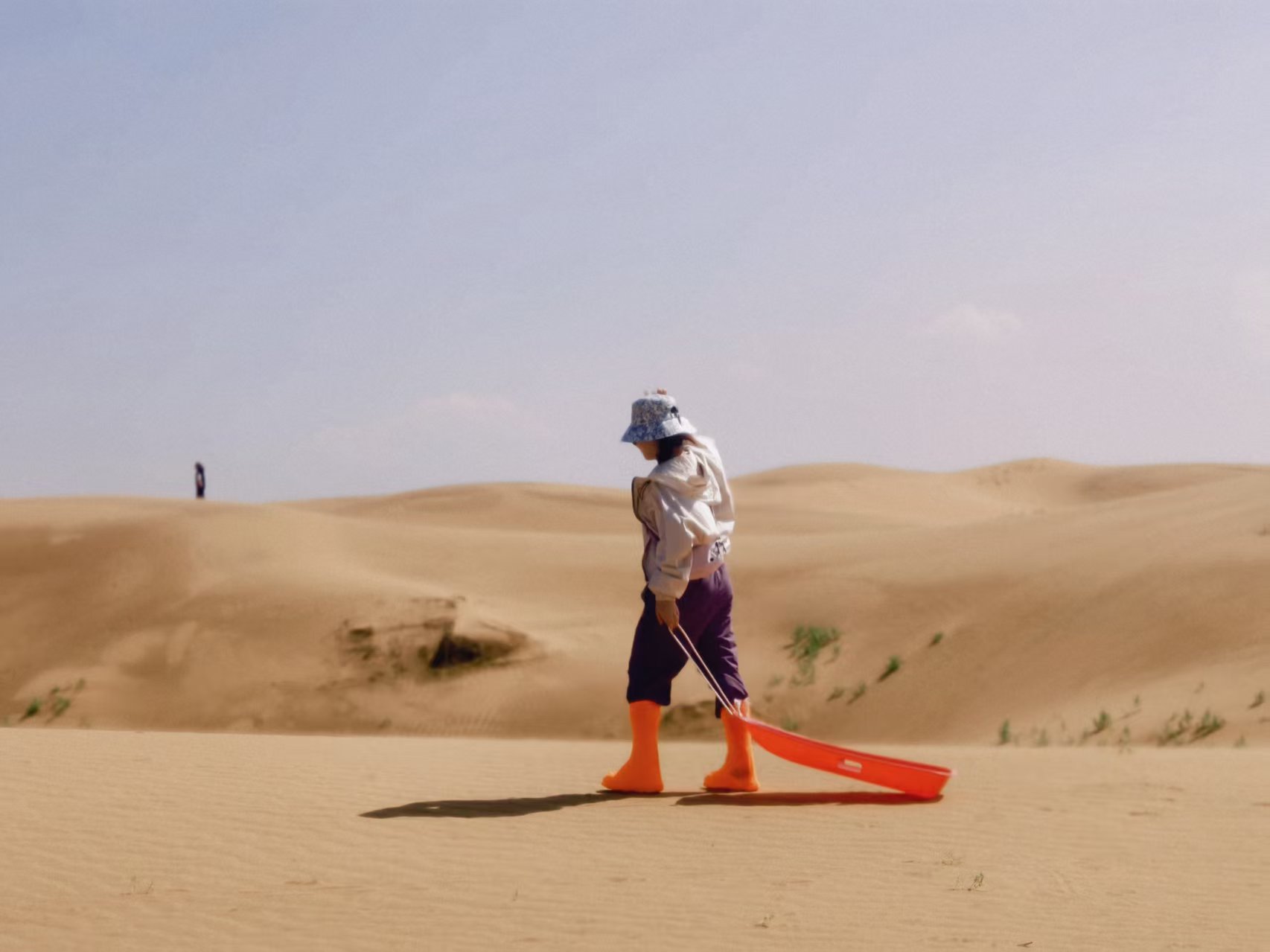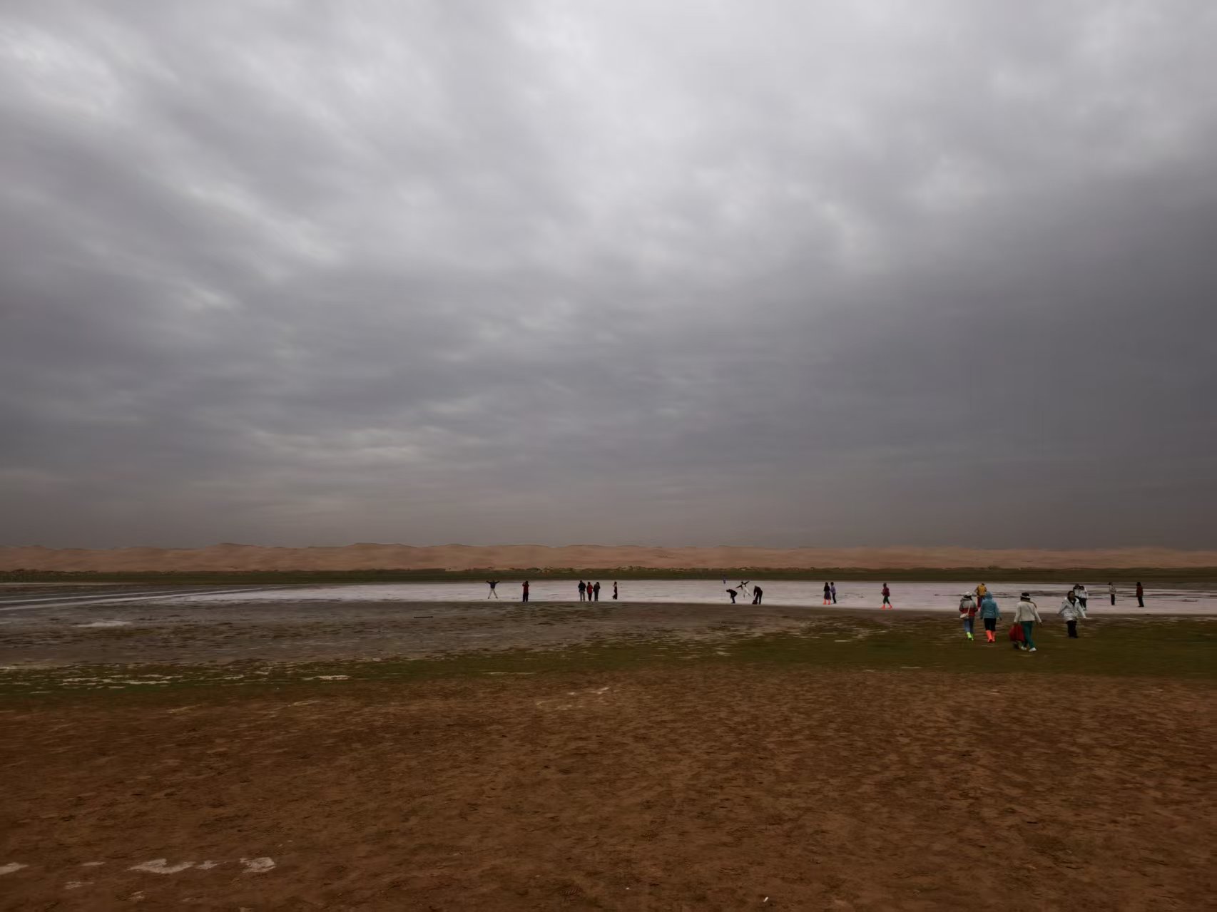 继续驶向腾格里沙漠。小排量的车在单车道上喘息,越野车则载我们进入“五湖穿越”。沙漠中的五个湖泊,像是天意遗落在荒原中的眼泪。此前在沙坡头体验过人工的沙漠娱乐,但在这里,大自然的荒凉压迫无可抵挡。