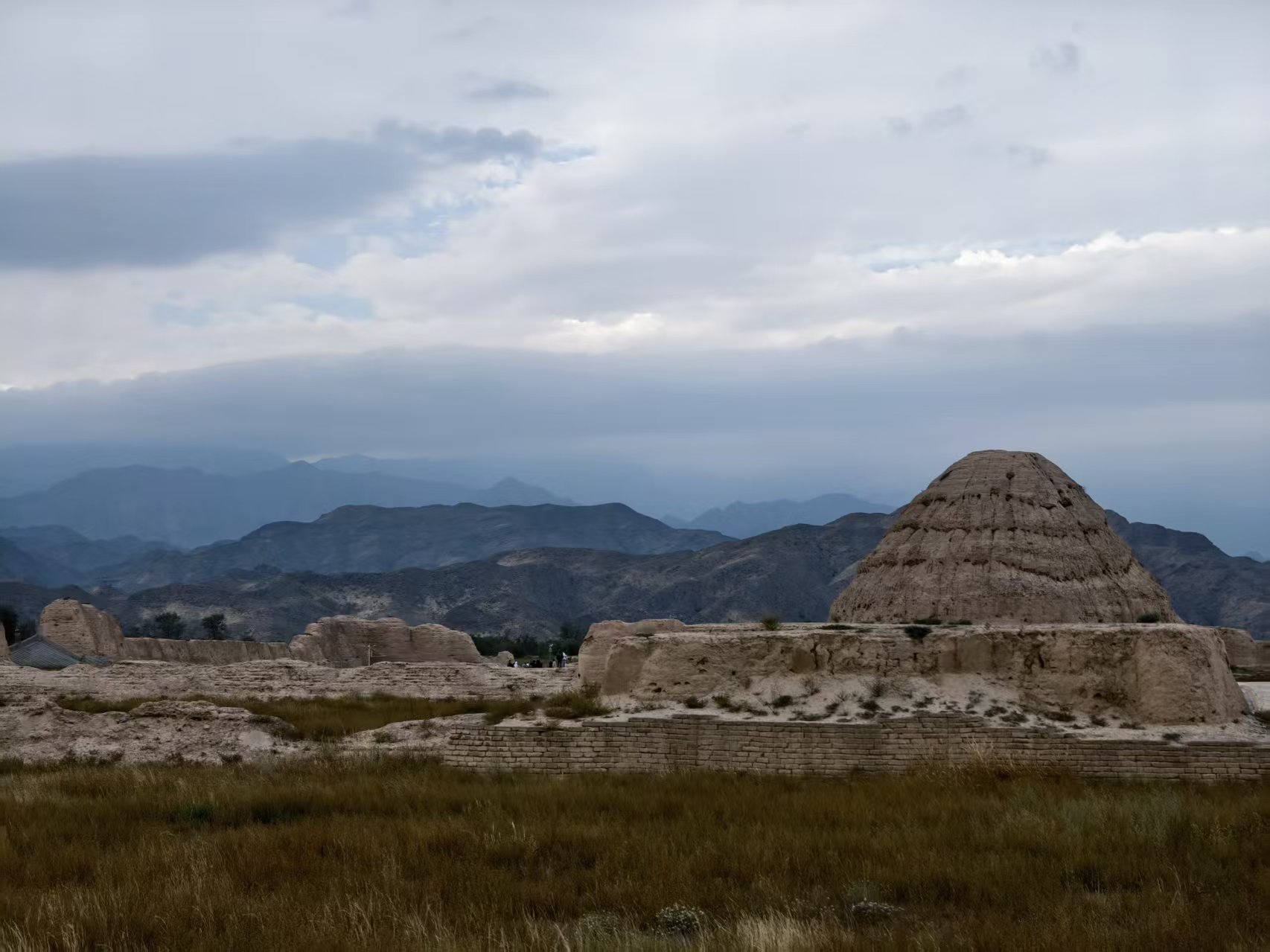 夜幕中,本打算落脚巴彦浩特,但临时起意,改道银川。路过西夏皇陵,古代王朝的残垣在暮色中静卧。范仲淹《西夏词》有句:“边声连角起,夕照入城孤。”王朝已覆灭,只留下陵冢在风沙中沉默。
