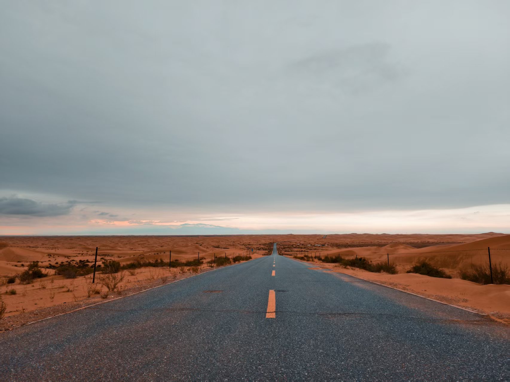 离开寺院,我们沿着一条县道随意驶入沙漠。十几公里后,豁然开朗。车行于沙漠公路,四周是无边的寂静。那一刻,我觉得自己与世界隔绝,唯有黄沙与我同呼吸。